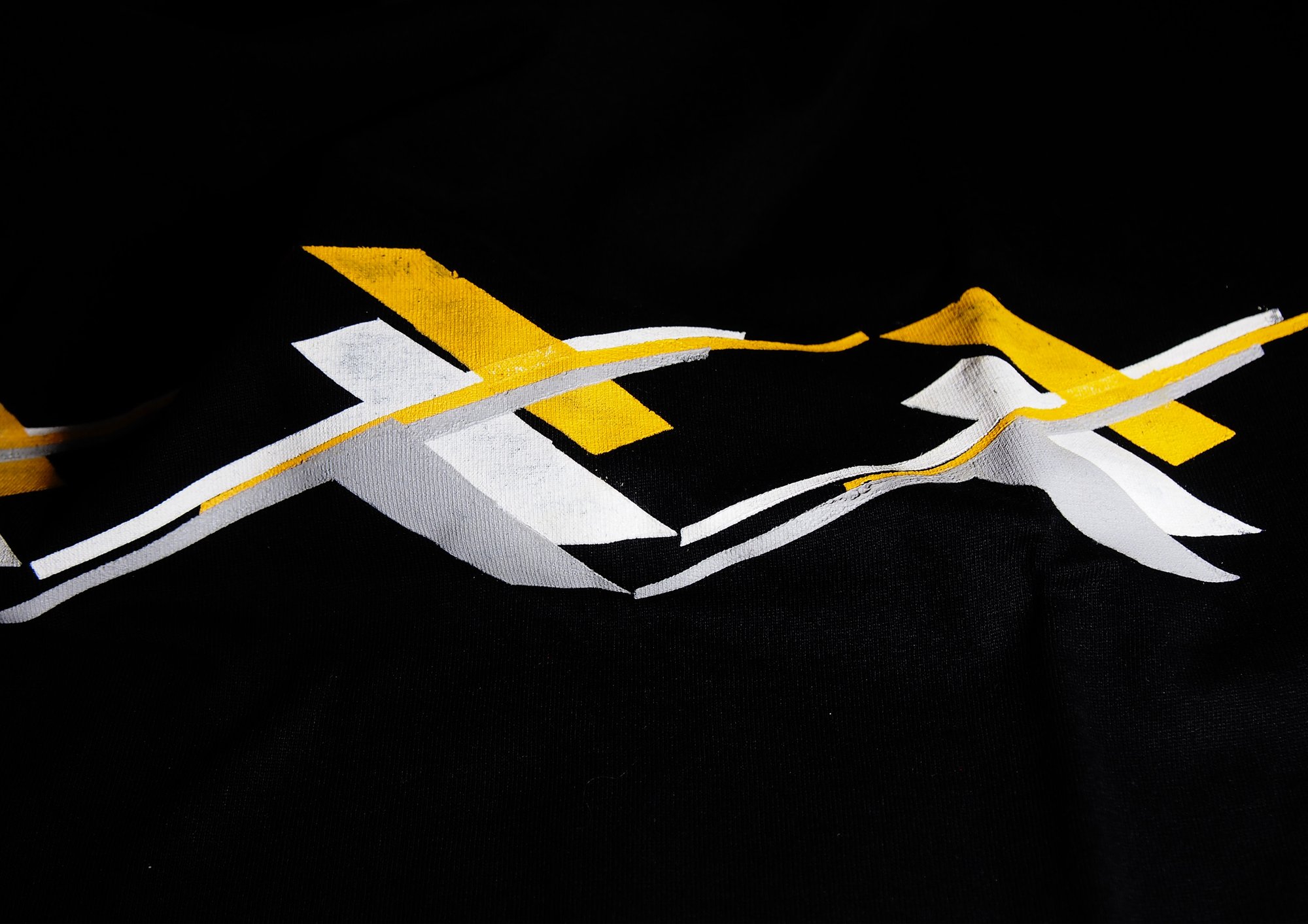 Yellow, White and Grey. Hand Cut Stencil Design.